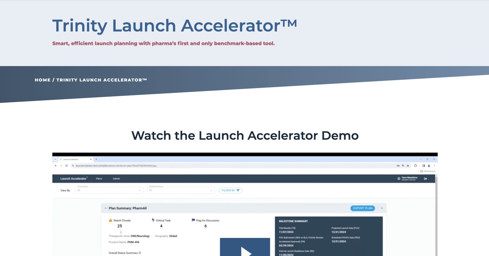 Trinity Life Sciences partnered with Fynydd to build an enterprise software service for pharmaceutical companies to help them develop and launch their biopharma products. All aspects of the tool are designed to support the unique needs of launching biopharma products globally.