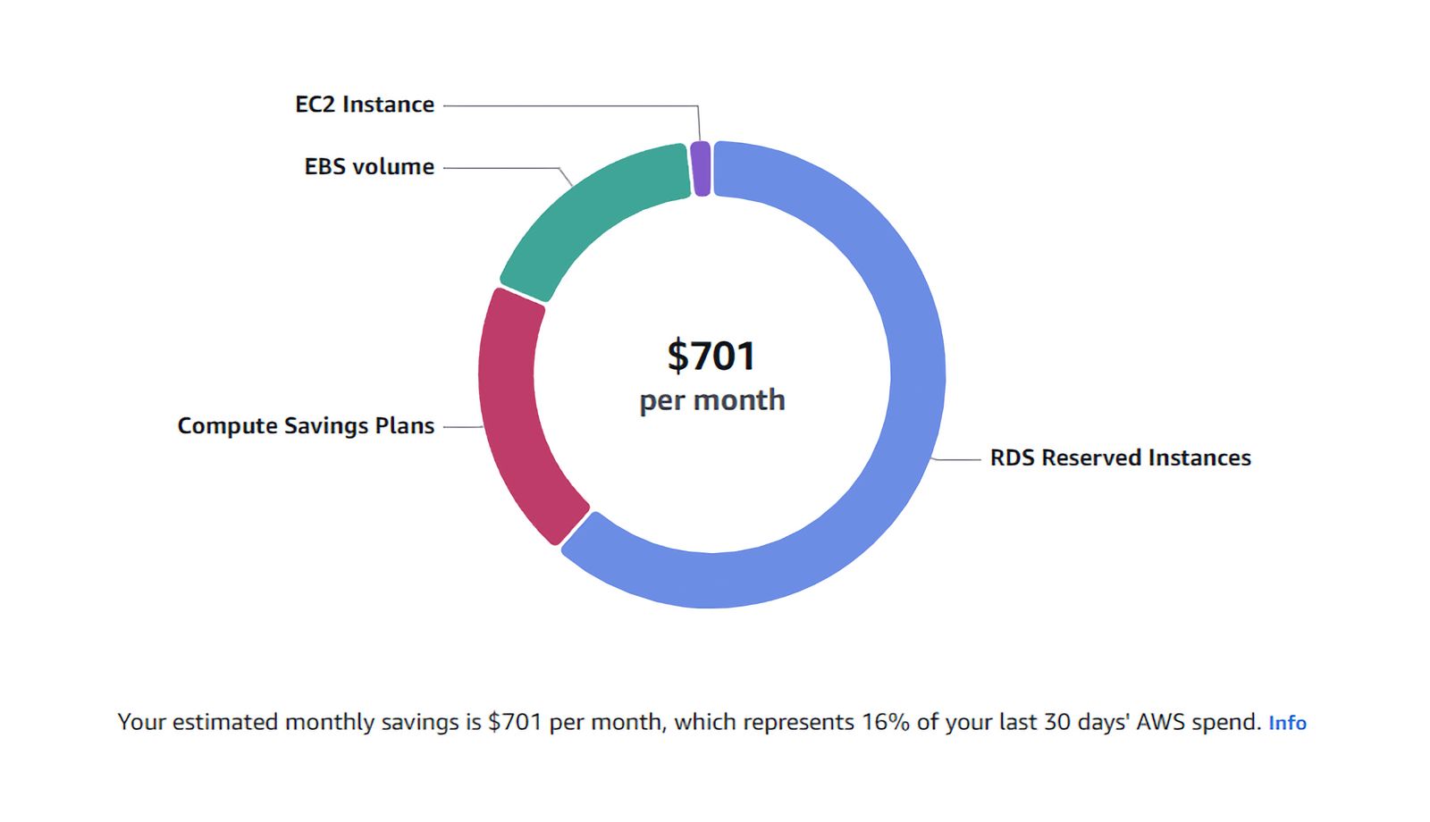 They recently engaged us to begin the cost optimization process. And so far, just by using this tool, we were able to find almost 20% in savings. Although this does not represent all of the money saving/efficiency changes that we believe can be made, it provided a list of the changes we can make that are easily shared with the customer. We even get an indication of the effort, risk, and reversibilty of each of the changes.